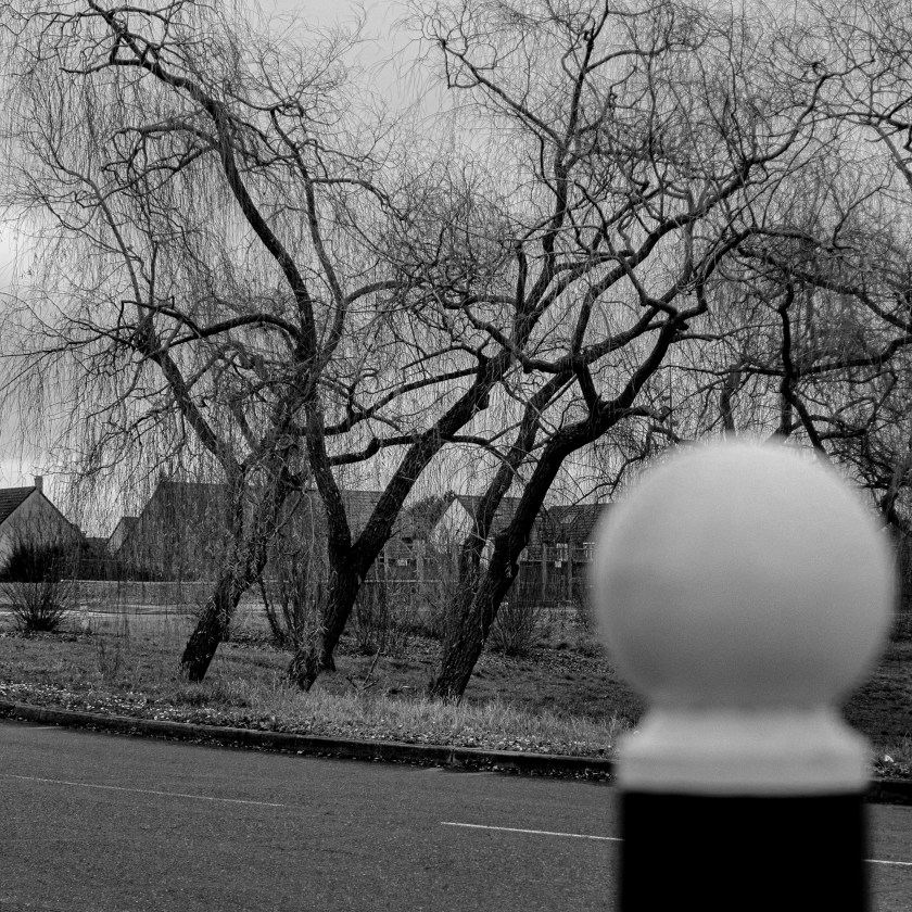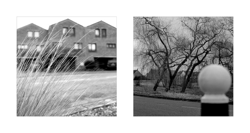 Nous sommes en hiver. On observe déjà des bourgeons mais pas de fleurs hormis quelques perce-neige. Au coin de ma rue, de hautes herbes sèches que je photographie avec en arrière-plan les maisons aux murs en briques de Leers. Un peu plus loin, le grand carrefour circulaire du Haut de Gency avec ses saules pleureurs. Le défi en cours exige une zone floue, contrainte à laquelle je dois ajouter le format carré et le noir et blanc (voir C’est parti!). Sans ces obligations je n’aurais sans doute pas pris ces images. Des vues opportunistes — ce n’était pas le but de ma promenade — de lieux a priori sans intérêt photographique qui peuvent devenir plaisants voire attachants s’ils sont convenablement présentés. La photo des herbes sèches recevra un accueil très positif sur facebook et sur instagram. Certains commentaires évoquent un changement de style.