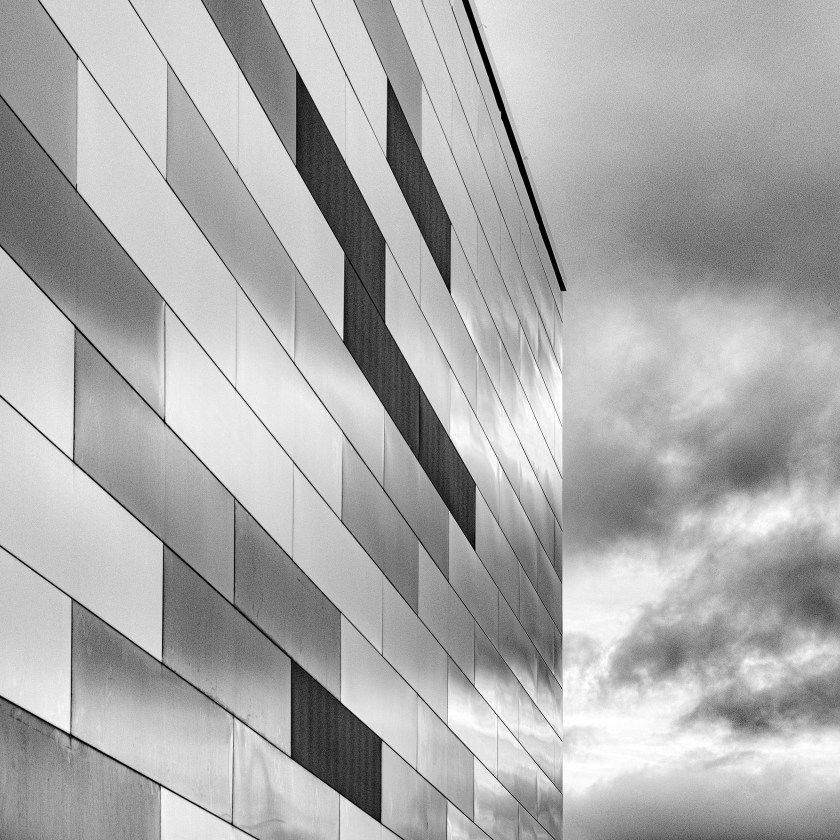 Le sol est un genre qui me plaît. À l’Aren Park, les passages pour piétons ressemblent à des codes à barres; c’est très curieux (photo de couverture). Les bardages sont de qualité; ils sont plans et couverts de panneaux rectangulaire de gris variables, allant du noir au blanc. Il y a là de quoi réaliser quelques images très graphiques.