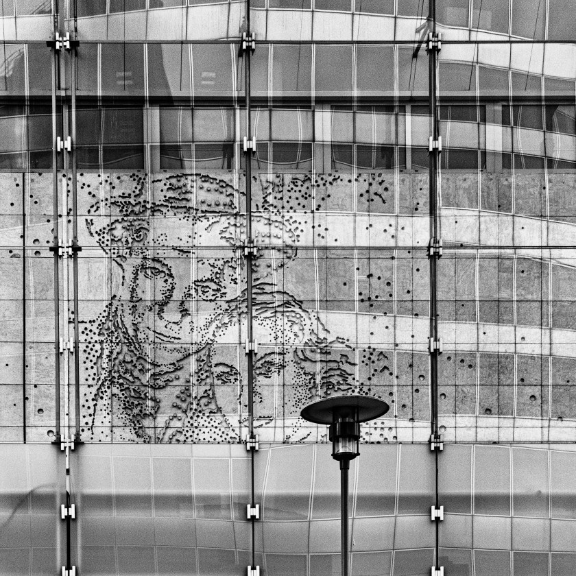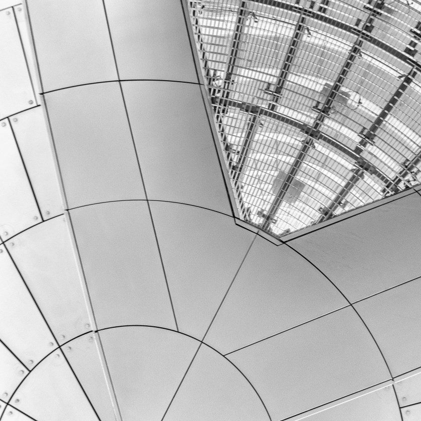 La station de la Défense est une grande station. On y trouve un vitrail, enfin c’est ainsi que je vois cette œuvre d’art. Ses lignes sont fortes et la photographier en noir et blanc m’a paru approprié.
