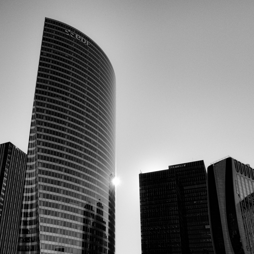 La tour EDF, en contre-jour elle devient noire et luisante comme une pierre précieuse