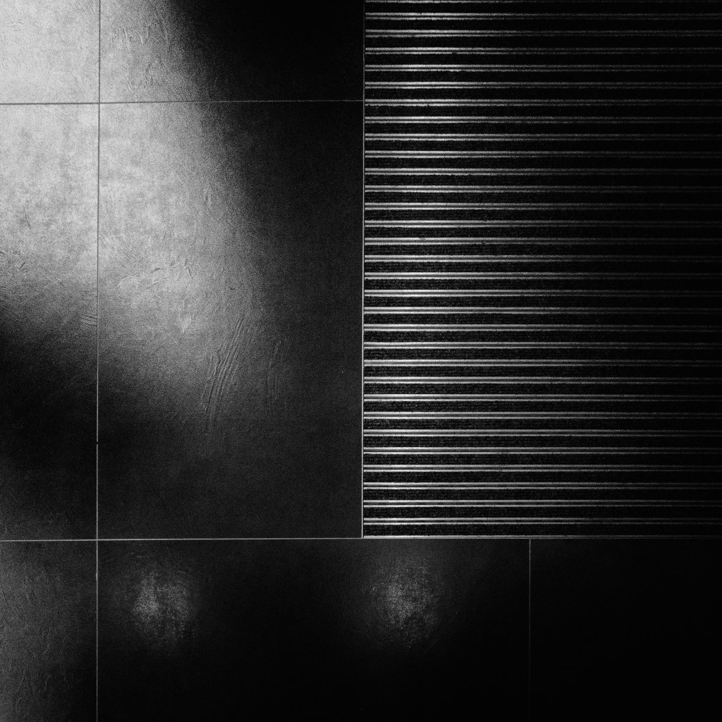L’air de rien, la machine est relancée pour de bon. J’ai fait plein de photos depuis ces deux-là ; elles sont dans la lignée. Images prises depuis mon balcon, architecture du quartier Luciline, minimalistes, format carré, très majoritairement en noir et blanc. Souvent opportunistes. La lumière, encore et toujours, capricieuse parfois, déterminante à chaque occurrence. Comme sur cette photo du carrelage de l’entrée de mon immeuble. Vous avez bien lu : le carrelage, au pied du panneau des boîtes aux lettres. Ce jour-là, il pleut. Le ciel est lumineux mais voilé. Pas formidable pour le paysage, même urbain, mais pour le sol de mon entrée, c’est top.