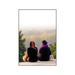 Un double portrait et un autoportrait. Deux jeunes femmes au pied des Douze Colonnes, en octobre 2015. Image retravaillée ces derniers jours. Merci à la correction du voile atmosphérique et à la Nik Collection. Un autoportrait tout frais, deux jours tout au plus.